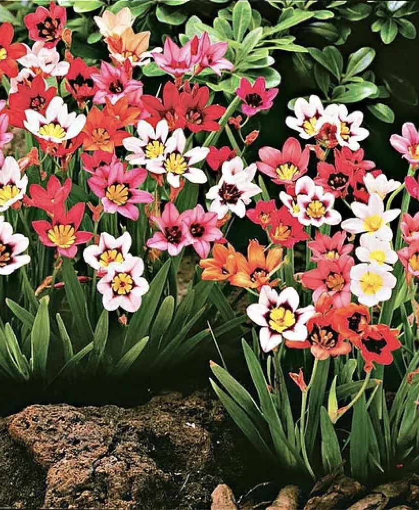 Condiciones para su cultivo: A veces llamada la flor del arlequín, es un cormo resistente, que florece en primavera de Sudáfrica, de la cual es originaria Las flores tienen forma de estrella y a menudo tienen un centro negro o amarillo. El color principal de la flor puede ser rojo, amarillo, blanco, morado, rosa, crema, burdeos o naranja. Las hojas tienen forma de lanza y se mantienen en abanico a una altura de 20-30 cm. Plante los bulbos a mediados de otoño, a unos 10 cm de profundidad y a 5 cm de distancia. Crecen mejor en una posición soleada, muy bien drenada y bastante seca durante el verano cuando los bulbos están inactivos.