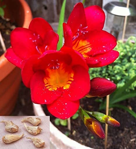 60 Bulbos Importados de Fresias Semi- Dobles Color: Rojo. Size: 5+