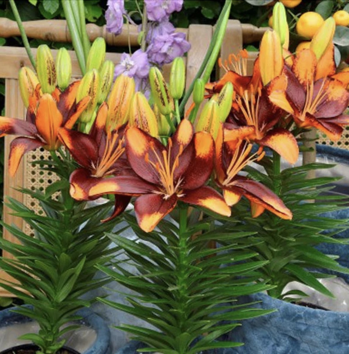 Variedad de Lilium mas pequeña ideal para jardineras o macetas, también puede plantar directo al jardín , de grandes y perfumadas flores.
