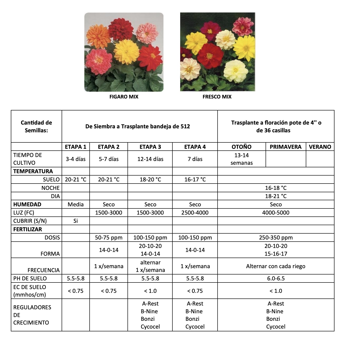 Variedad: Dalia Gigante Decorativa. Colores variados.