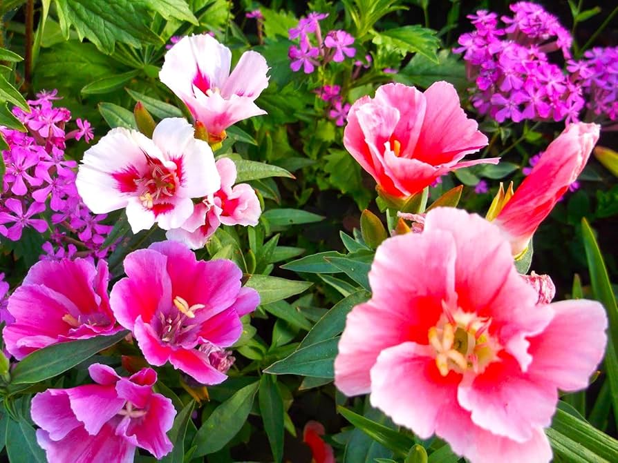 La godetia ( Clarkia ) es una planta anual resistente con hojas estrechas y ovaladas y flores en forma de embudo o cuenco. Sus flores se presentan en una variedad de colores, como rosa, rojo, blanco y salmón. Esta vibrante planta anual es originaria del suroeste de Canadá y partes del oeste de Estados Unidos, como California. Existen variedades de flores simples y dobles, así como mezclas anuales, como «Little Frills Mix», que presenta flores simples en una mezcla de colores. Perfecta para arriates, entre las variedades más populares se encuentran la Godetia grandiflora, con flores rosas o lilas, y variedades enanas como la Clarkia amoena , que alcanza los 25 cm y tiene flores rosas y blancas.