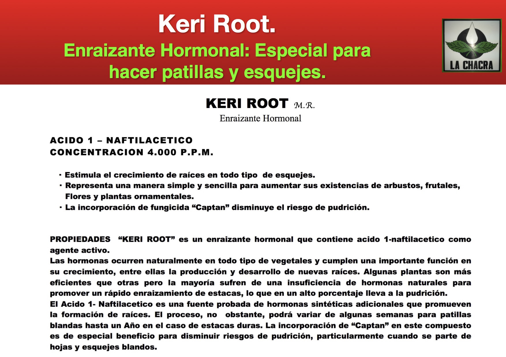Keri-root 800 gramos $ 21.650 Agregar al carro Avísame cuando llegue Keri-Root Enraizante Hormonal Frasco 800 Gms Valor $ 21.650.-
