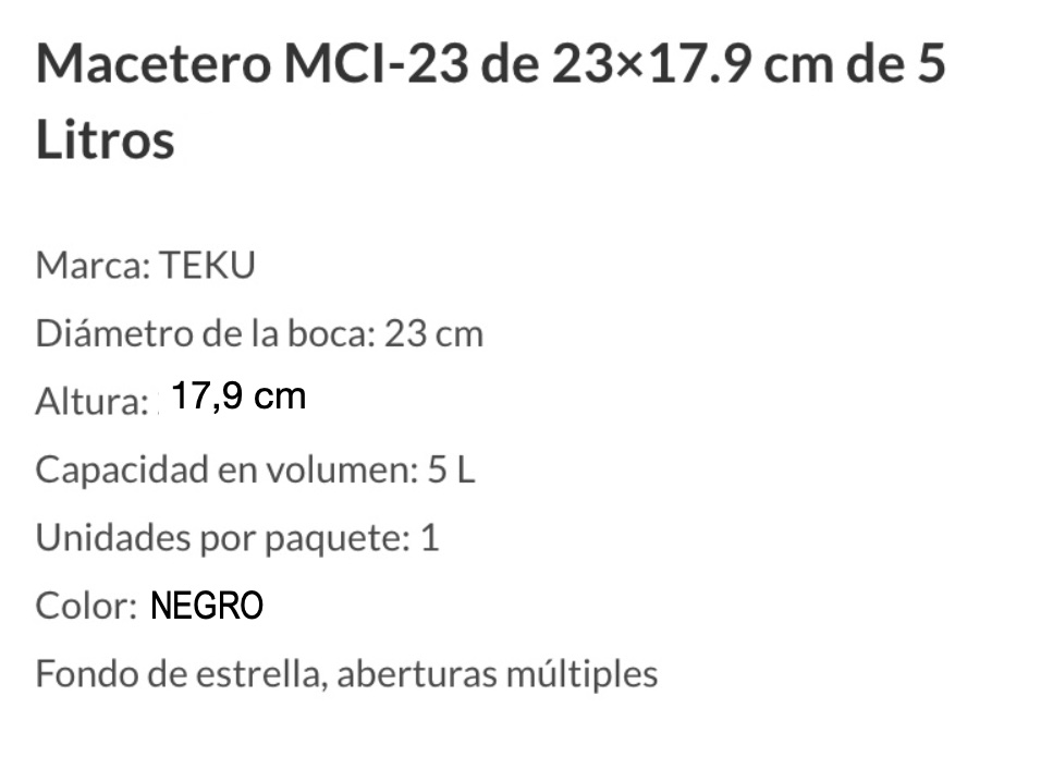 Maceteros Plásticos Marca TEKU. Modelo MCI-23