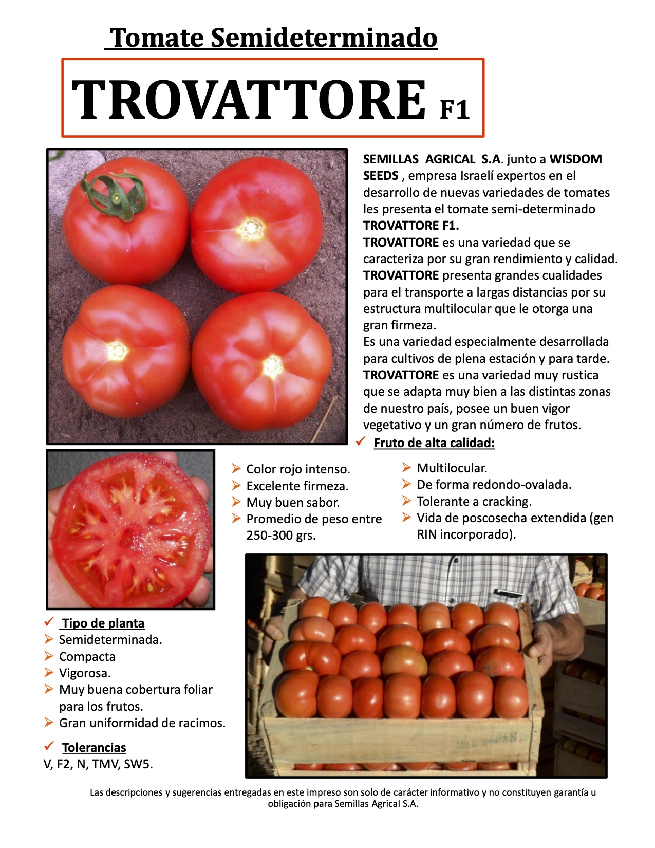 Este material de crecimiento semideterminado destaca por su gran rusticidad, lo que permite su producción desde la III a VII Región.