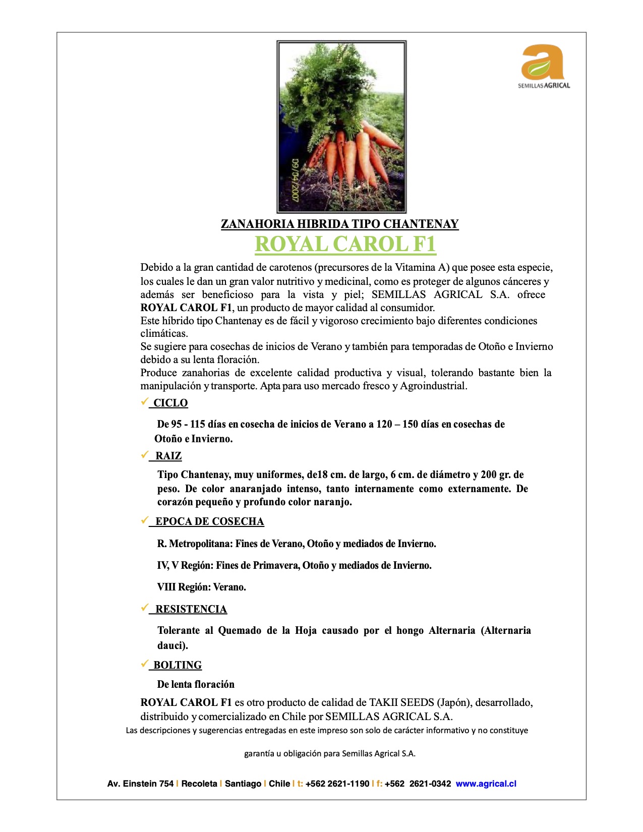 Zanahoria híbrida royal carol f-1